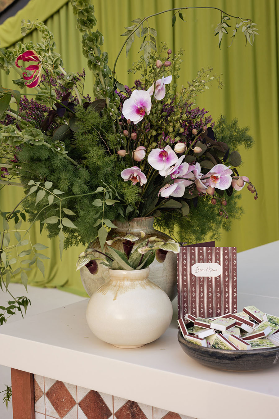 A bespoke tiled bar in earthy tones, designed as the marquee’s focal point, drew guests together with effortless elegance.