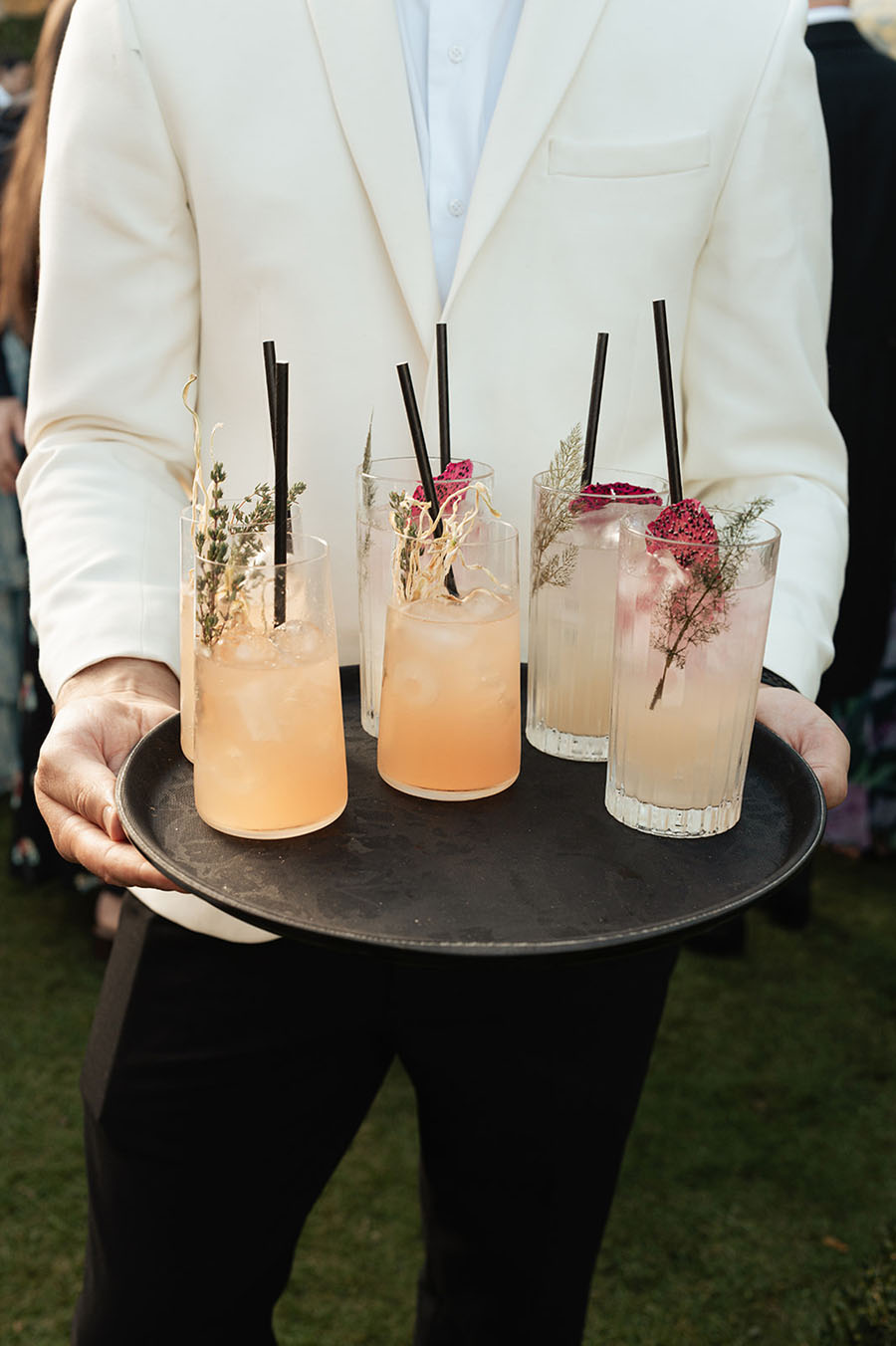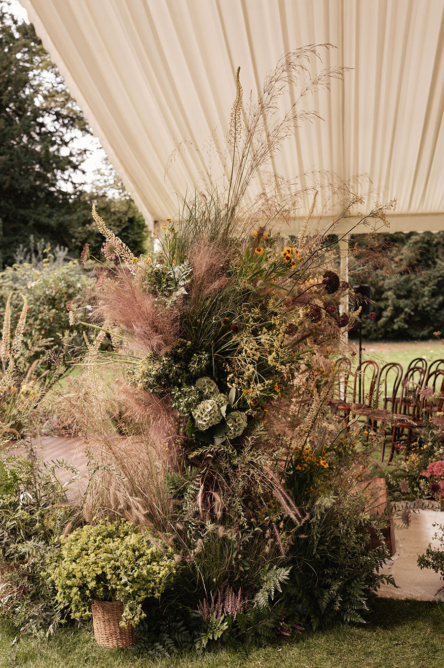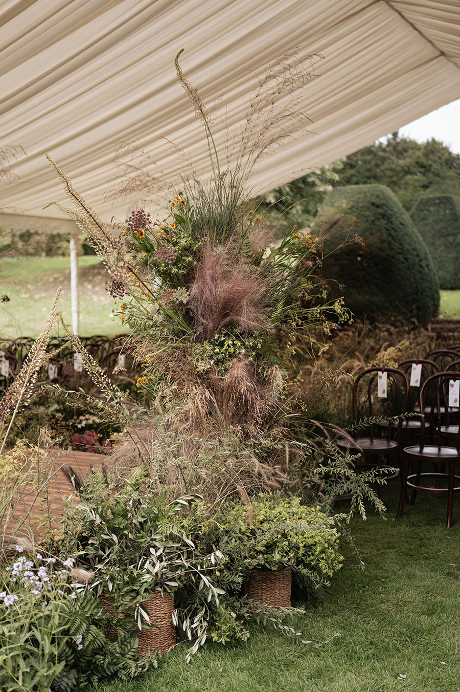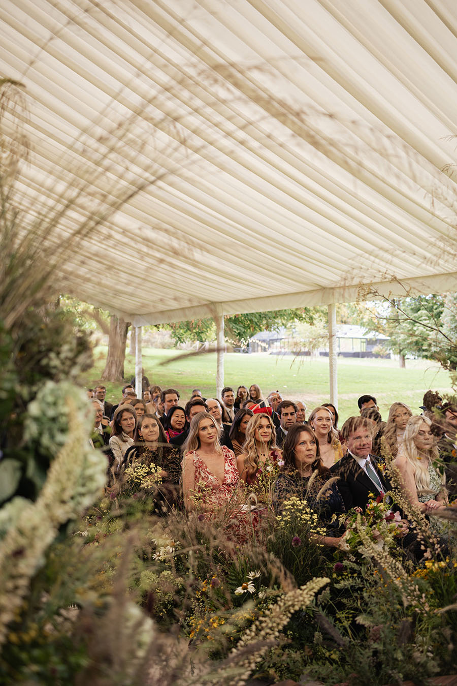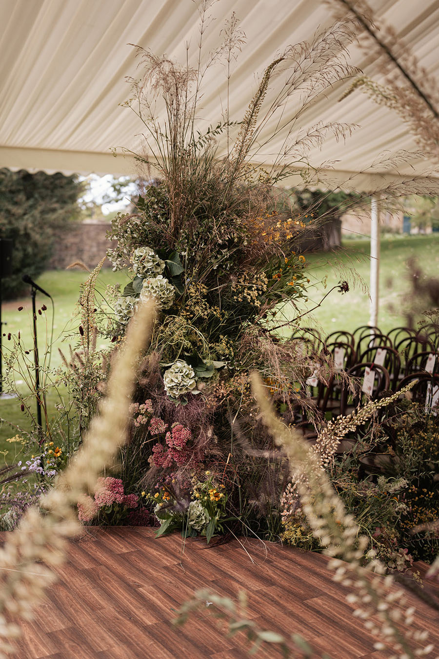 Rather than an abundance of flowers, we focused on impactful interior moments: sculptural bar florals, curated vignettes, and a purpose-built marquee that transformed seamlessly from relaxed dining to late-night revelry. Every choice reflected the couple’s style and ethos: beautiful, intentional, and deeply personal.