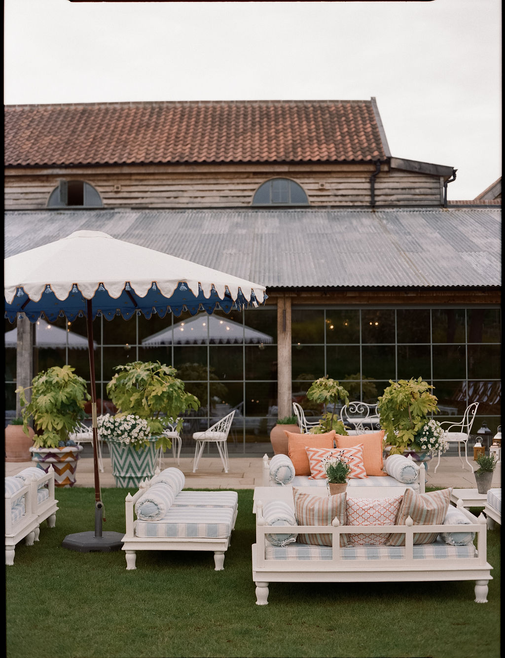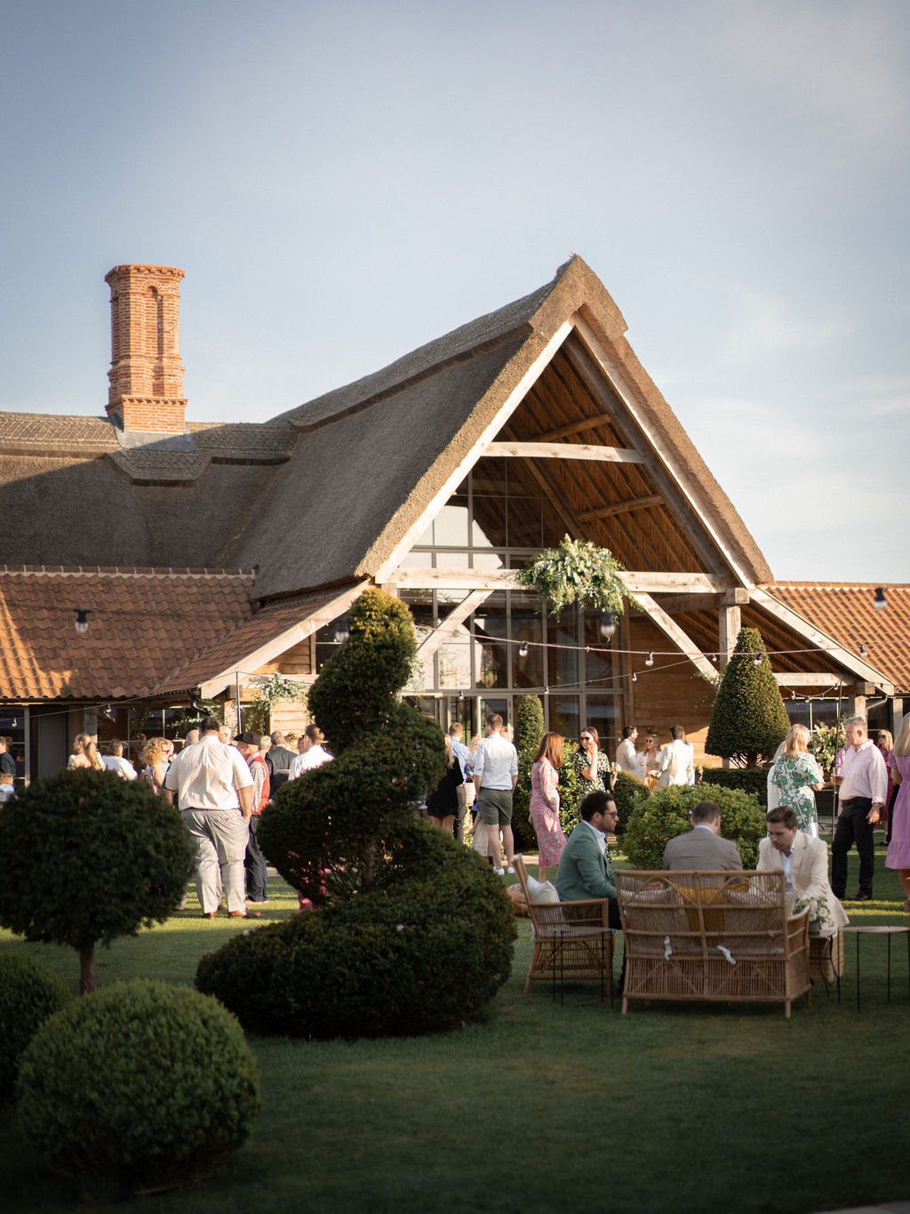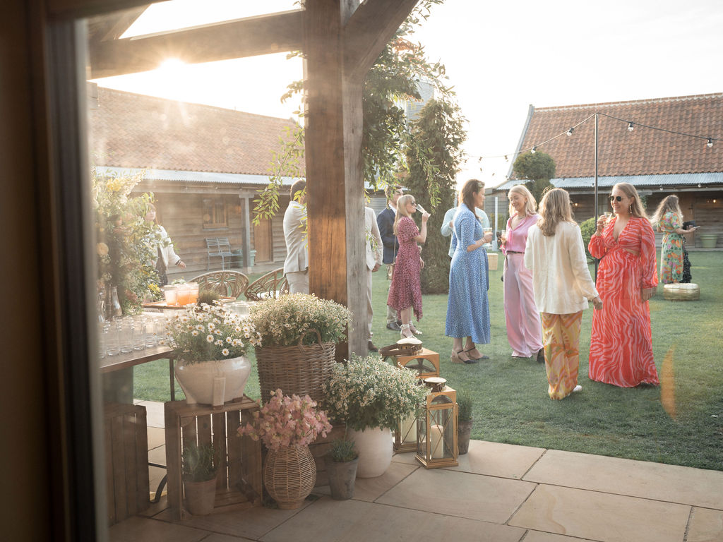The celebrations began with a relaxed barbecue in Chapel Barn’s gardens, a chance for guests to unwind after their journeys and settle into the spirit of the weekend. With long tables laid beneath the Suffolk skies, the atmosphere was convivial and warm. Lettice Events served up a feast of seasonal dishes, grilled over open flames and shared family-style, while a lively soundtrack filled the air. It was the perfect opening note: informal, joyful, and full of anticipation.