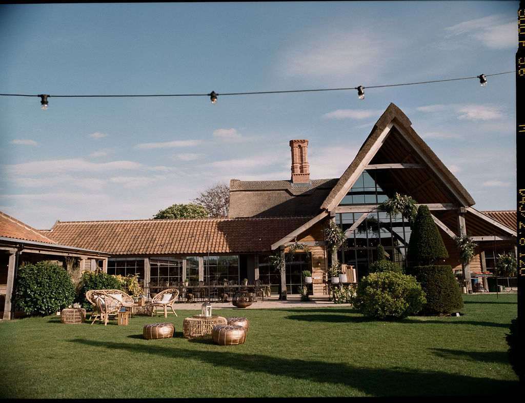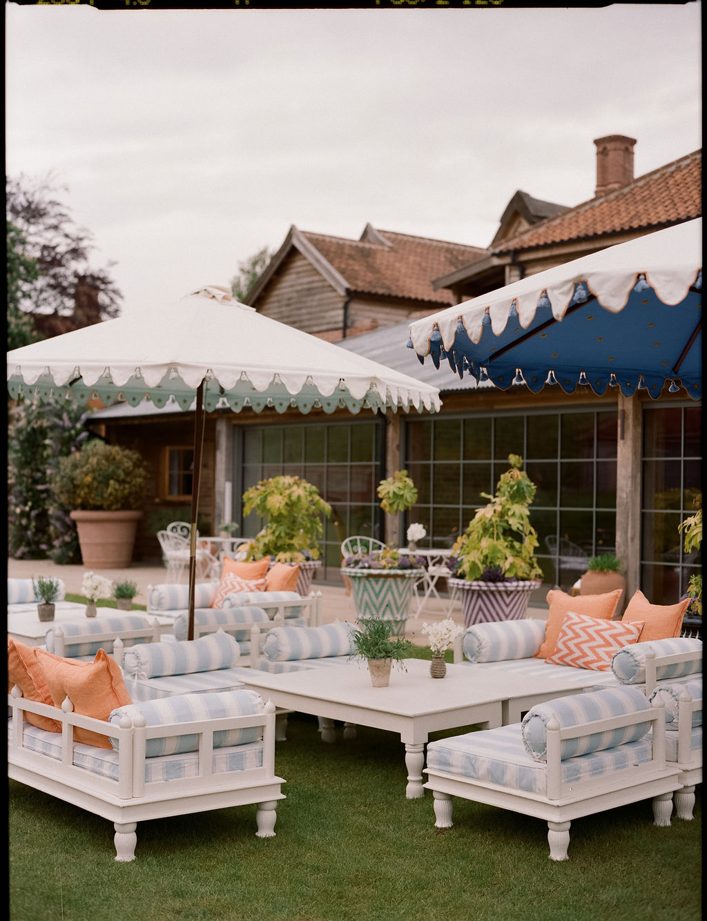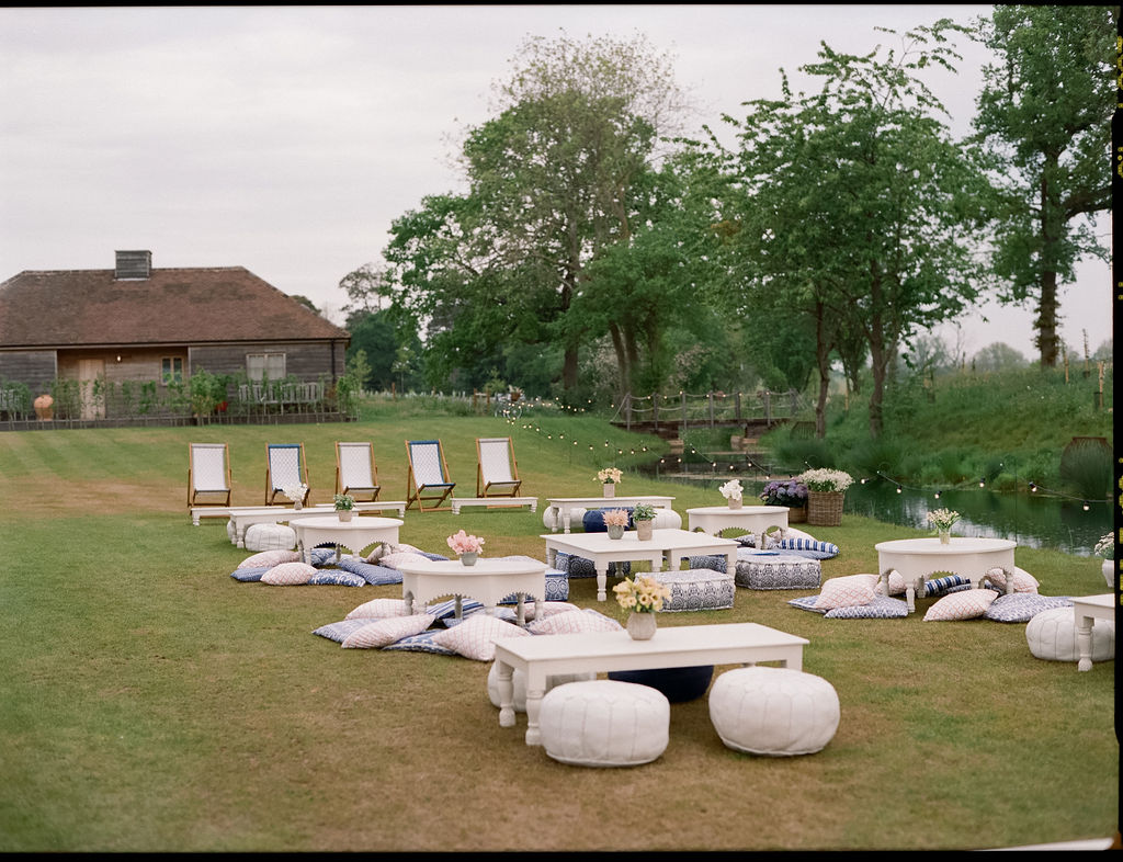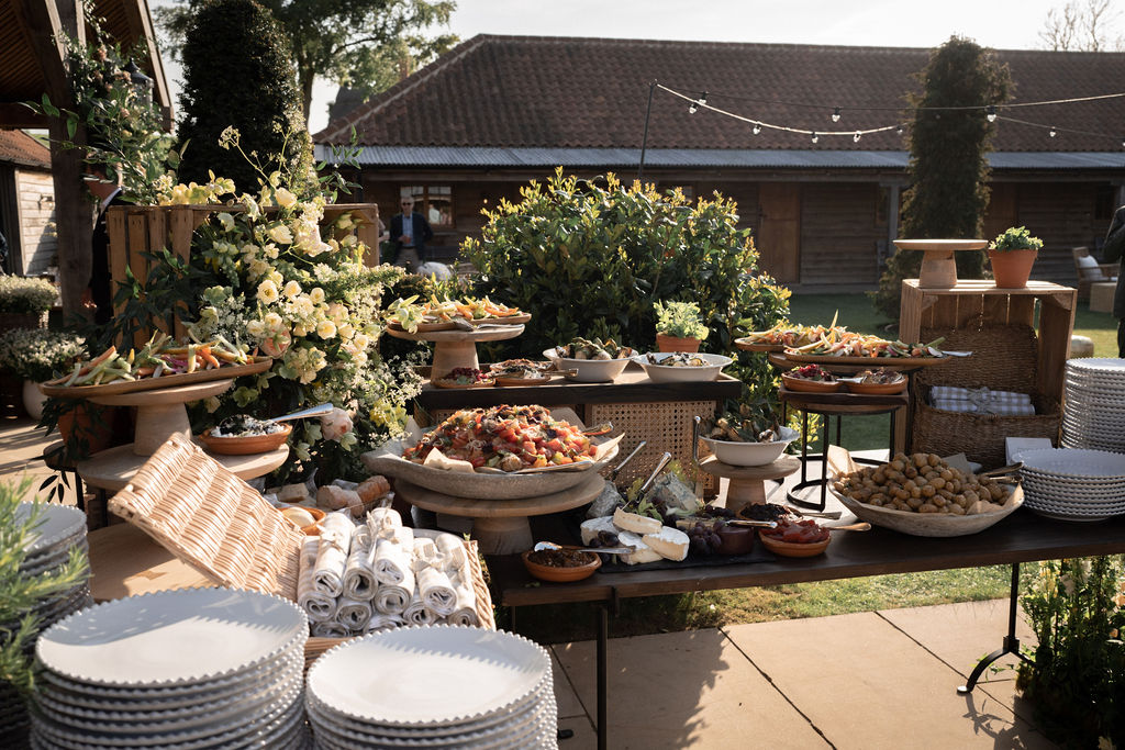 The celebrations began with a relaxed barbecue in Chapel Barn’s gardens, a chance for guests to unwind after their journeys and settle into the spirit of the weekend. With long tables laid beneath the Suffolk skies, the atmosphere was convivial and warm. Lettice Events served up a feast of seasonal dishes, grilled over open flames and shared family-style, while a lively soundtrack filled the air. It was the perfect opening note: informal, joyful, and full of anticipation.